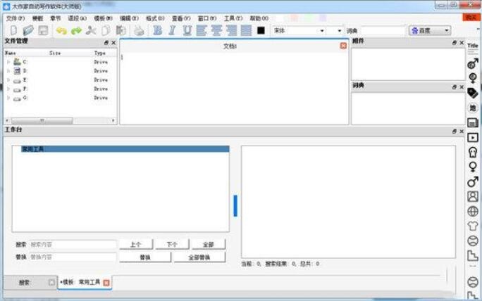 大作家超级写作软件“大作家”自动写作软件(中华人民共和国国家版权局计算机软件著作权登记证书登记号2009SR036557)根据文艺学、心理学、美学、经济学、军事学、信息学、脑科学等多种学科研发而成,不仅可以帮你构思,还可以替你构思,真正实现了“所欲即所想,所想即所得”。“大作家”采用智能联想技术,帮助用户梳理思路,并快速记录。