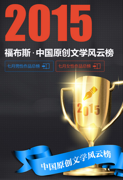 2015福布斯·中国原创文学风云榜“2015福布斯·中国原创文学风云榜”由阅文集团与福布斯中文版联合发布。其中,新作榜、分类子榜等榜单基于原创文学风云榜总榜数据依照规则生成。网络最具人气作品的跨平台战场,原创最具号召力作家间的全渠道竞争,来自90%网络忠诚粉丝的鼎力支持。2015年,四大原创门户+超级QQ阅读平台。一个声音,一个标准。来自覆盖绝对主流用户的全网最权威作品价值排行榜,重磅开启!