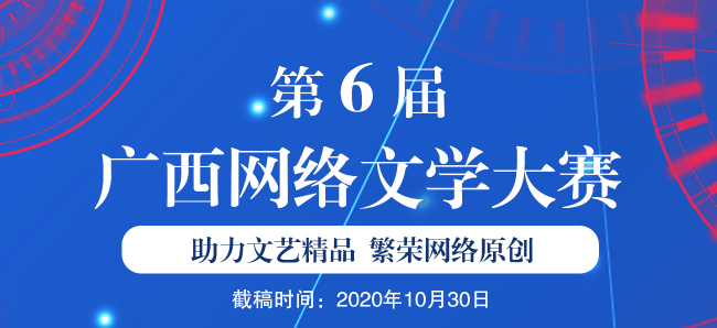 第六届广西网络文学大赛为深入贯彻落实习近平新时代中国特色社会主义思想和党的十九大,十九届二中、三中、四中全会精神,动员社会各界网络文学创作力量,创作更多演绎决战脱贫攻坚、全面建成小康社会、实现第一个百年奋斗目标的作品,进一步发挥优质网络文学在宣传、阐释社会主义核心价值观上的优势,推动社会主义文化繁荣兴盛,2020年4月30日,第六届广西网络文学大赛正式启动。大赛以“全民共筑中国梦,勠力同心奔小康”为主题,通过优秀的网络文学作品来记录全国各族人民同心携手,决胜全面小康、决战脱贫攻坚的历史征程。