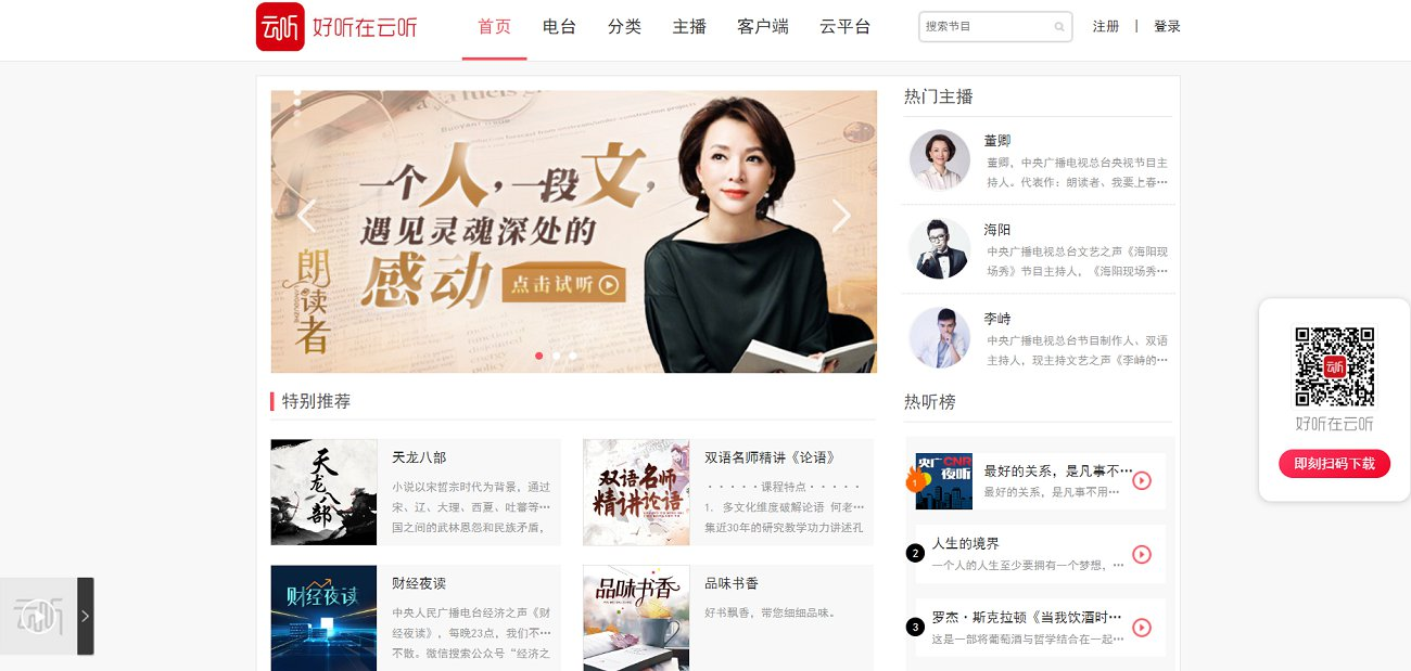 云听“云听”是中央广播电视总台基于5G+4K/8K+AI等新技术,推出的总台高品质声音聚合分发平台,也是继央视频上线之后又一个国家级5G声音新媒体平台。