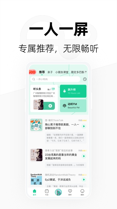 蜻蜓FM蜻蜓FM网络收音机,囊括了国内外数千家网络广播,并与全国各大地方电台合作,将传统电台整合到网络电台中,为用户呈现前沿丰富的广播节目和电台内容,涵盖了有声小说、相声小品、新闻、音乐、脱口秀、历史、情感、财经、儿童、评书、健康、教育、文化、科技、电台等三十余个大分类。蜻蜓FM是多年来用户喜爱的音频应用,手机必装的应用!