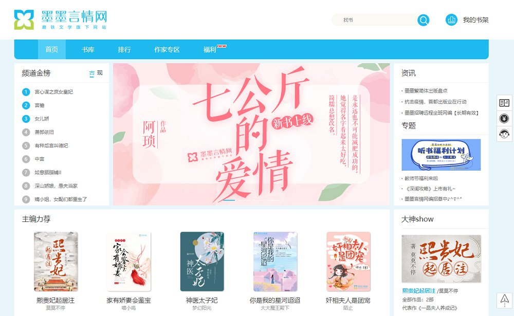 墨墨言情网知性女生阅读平台,力推当下最时尚的婚恋、悬爱、言情等题材的作品。打造名家名作,致力开拓新锐阅读文学市场。